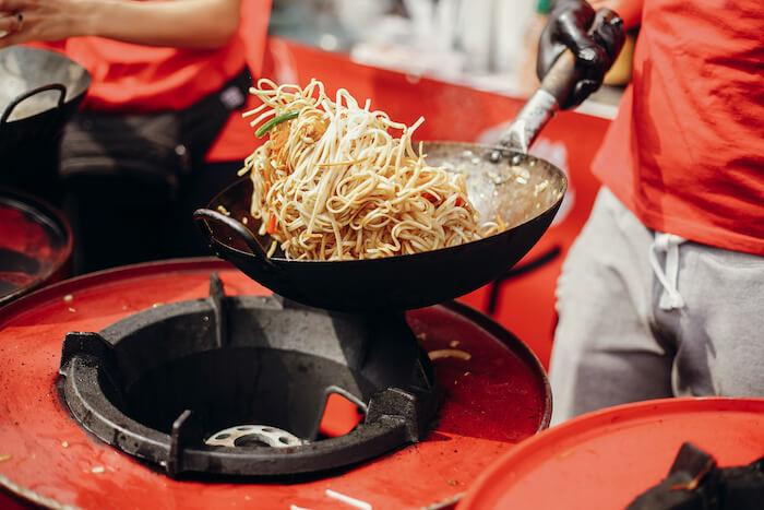 - Das Gemüse in den Wok geben und kurz durchschwenken.